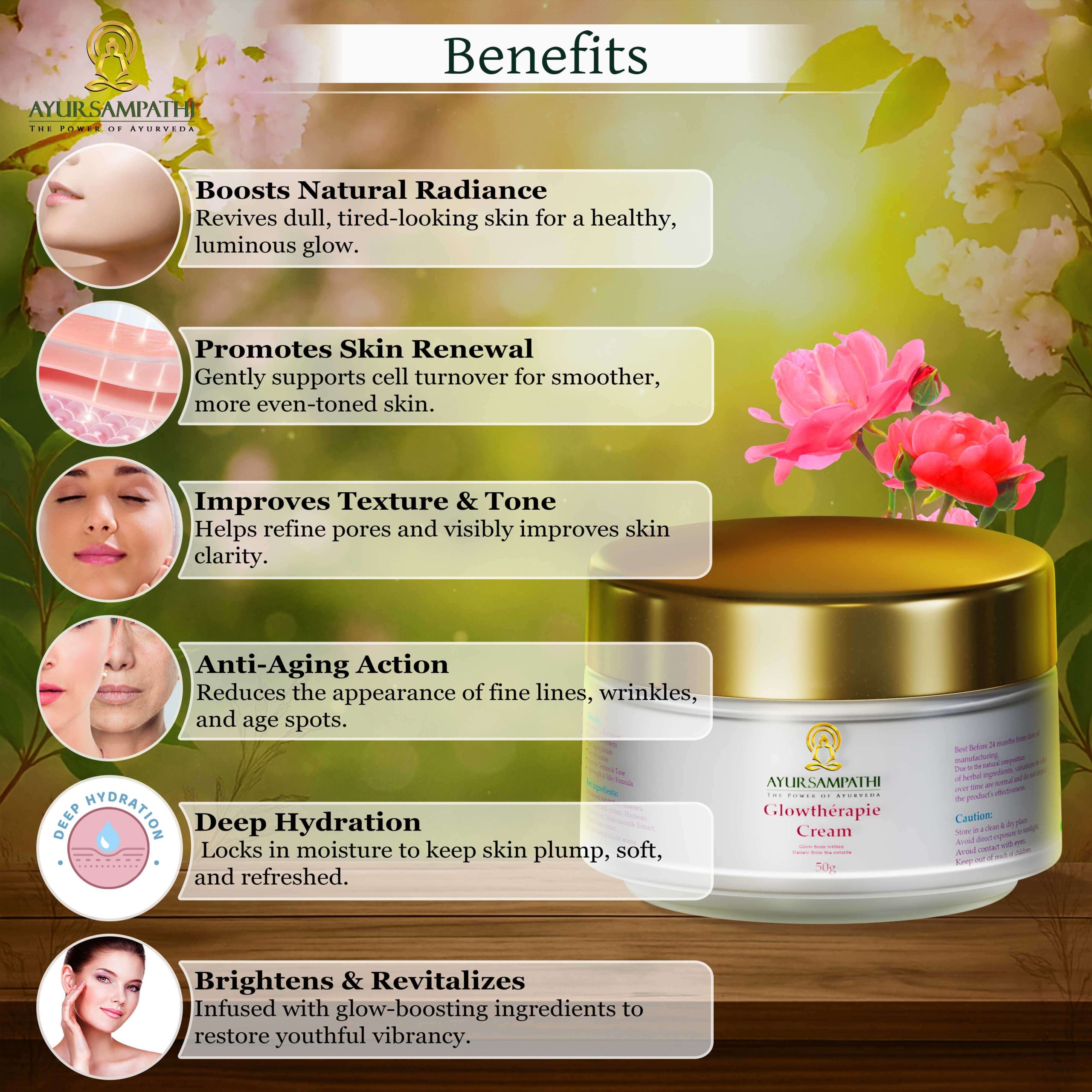 Unleash your skin’s natural radiance with Ayursampathi Glowtherape Cream, a luxurious Ayurvedic formulation designed to brighten, balance, and rejuvenate your complexion. Crafted with time-tested herbs and nourishing botanicals, Glowtherape works from within to enhance skin clarity and promote a healthy, luminous glow.