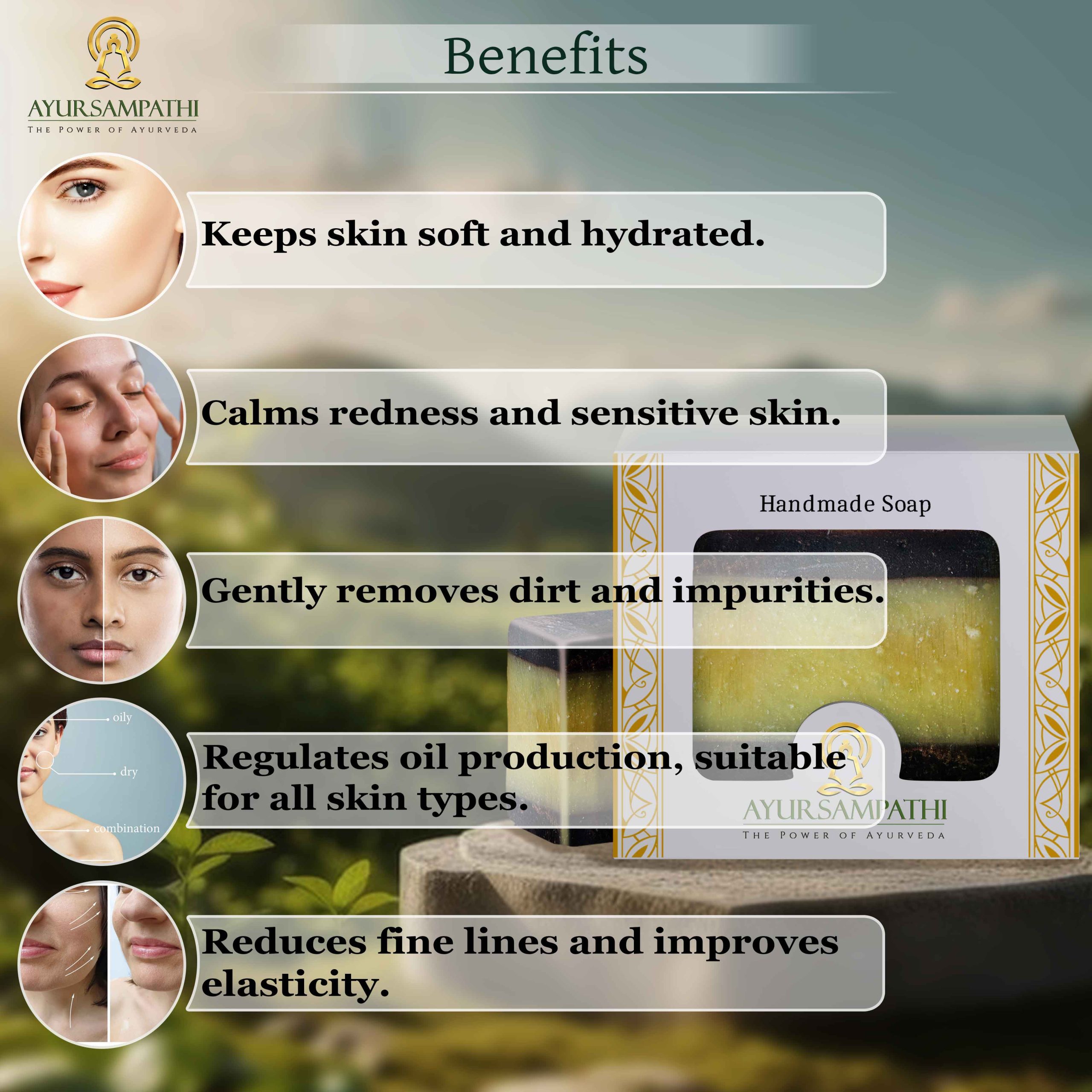 This soap is gently cleansing, non-drying, and suitable for all skin types—especially beneficial for dry, dull, or irritated skin.