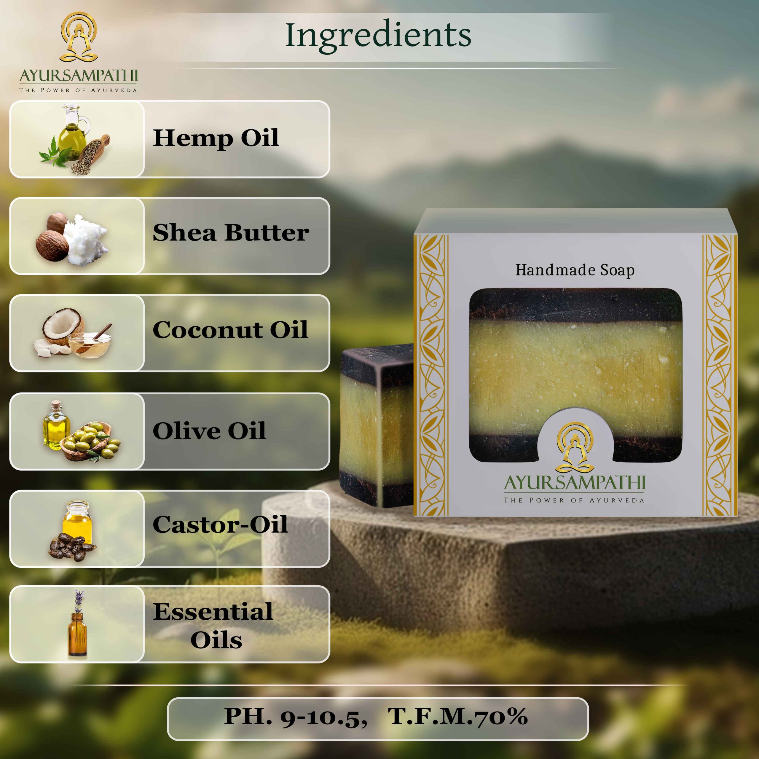 Indulge your skin in the luxurious care of our Ayurvedic Handmade Chocolate & Hemp Soap, a decadent blend of nourishing botanicals, skin-loving oils, and ancient Ayurvedic wisdom. Crafted in small batches, this soap combines the antioxidant power of pure cocoa with the deeply moisturizing and healing properties of hemp seed oil.