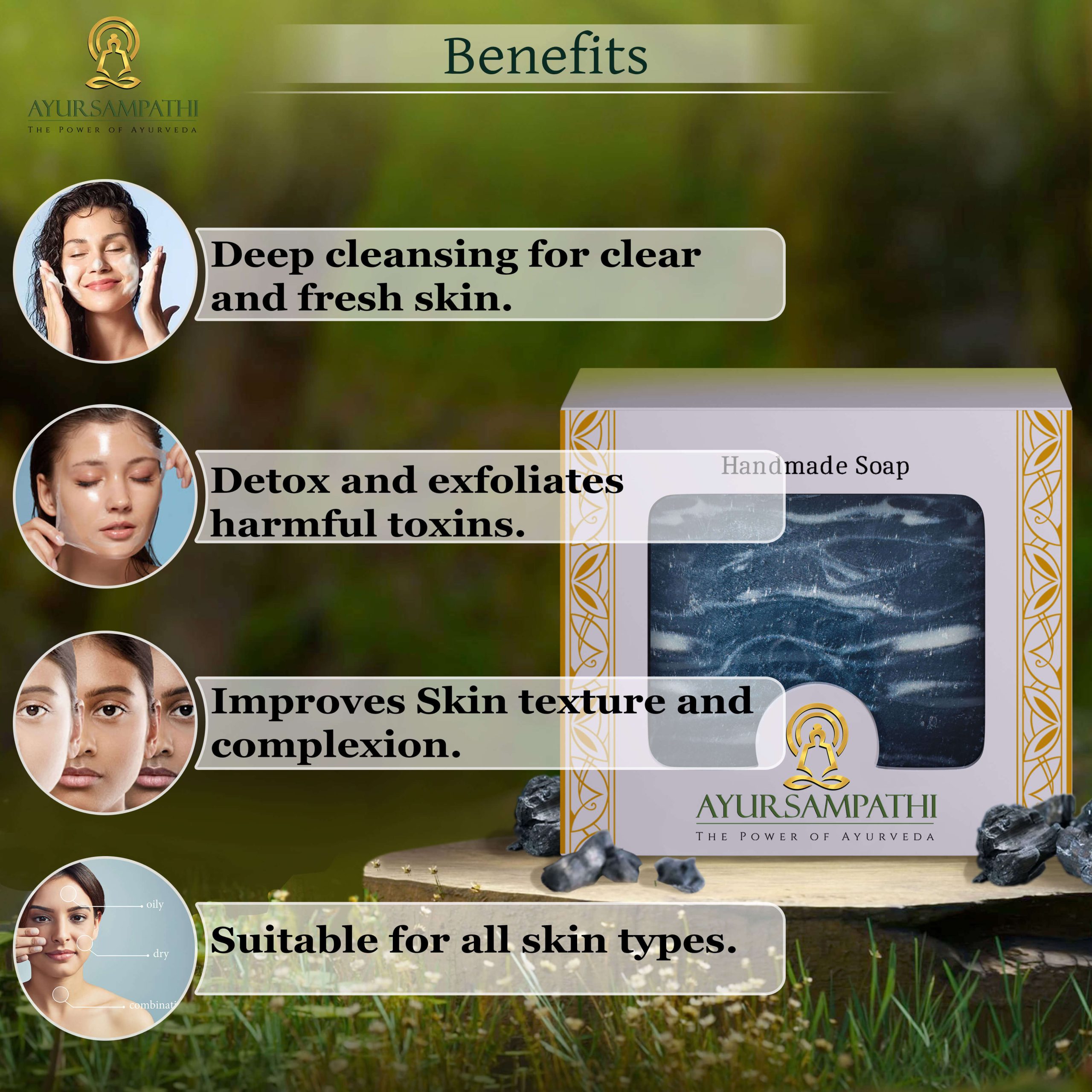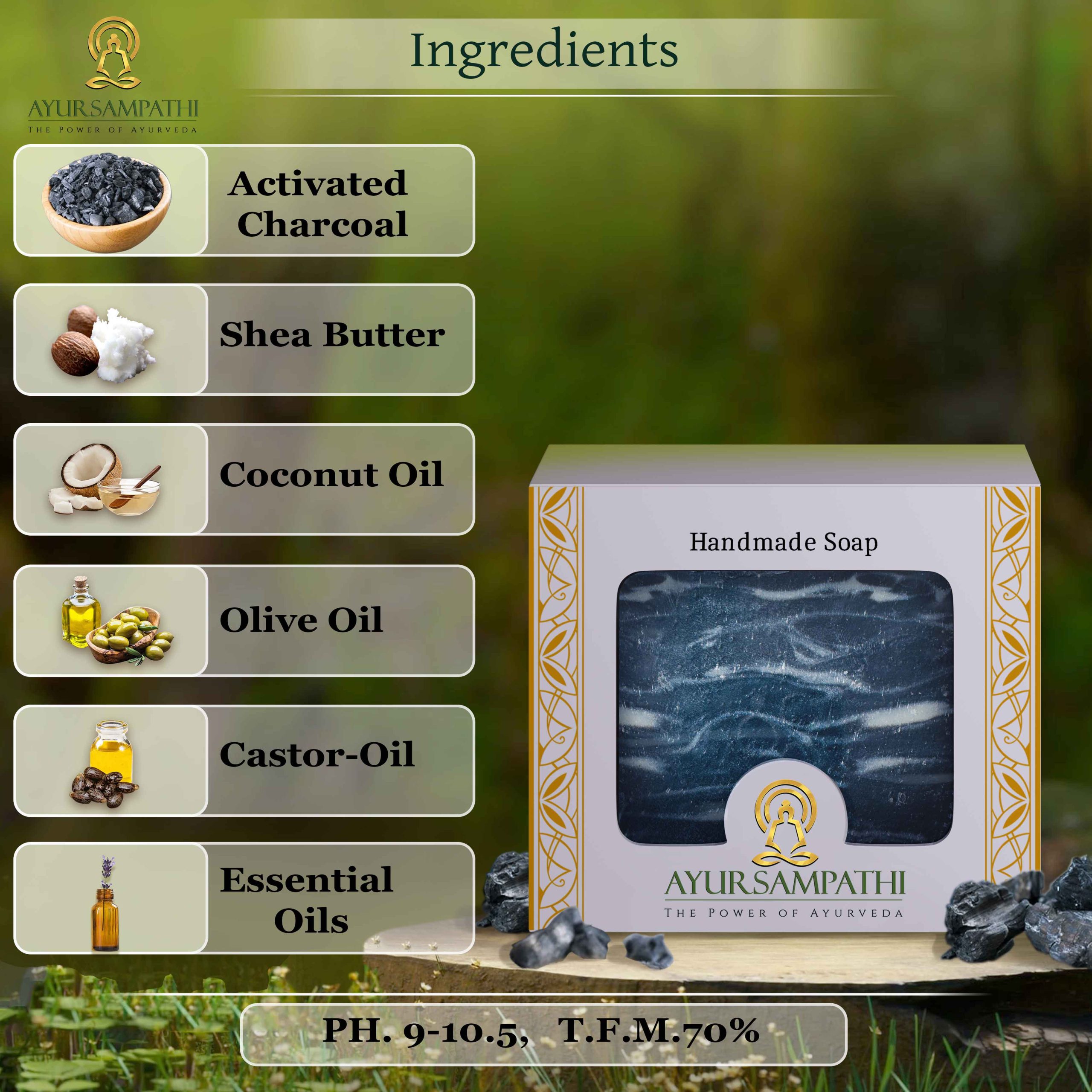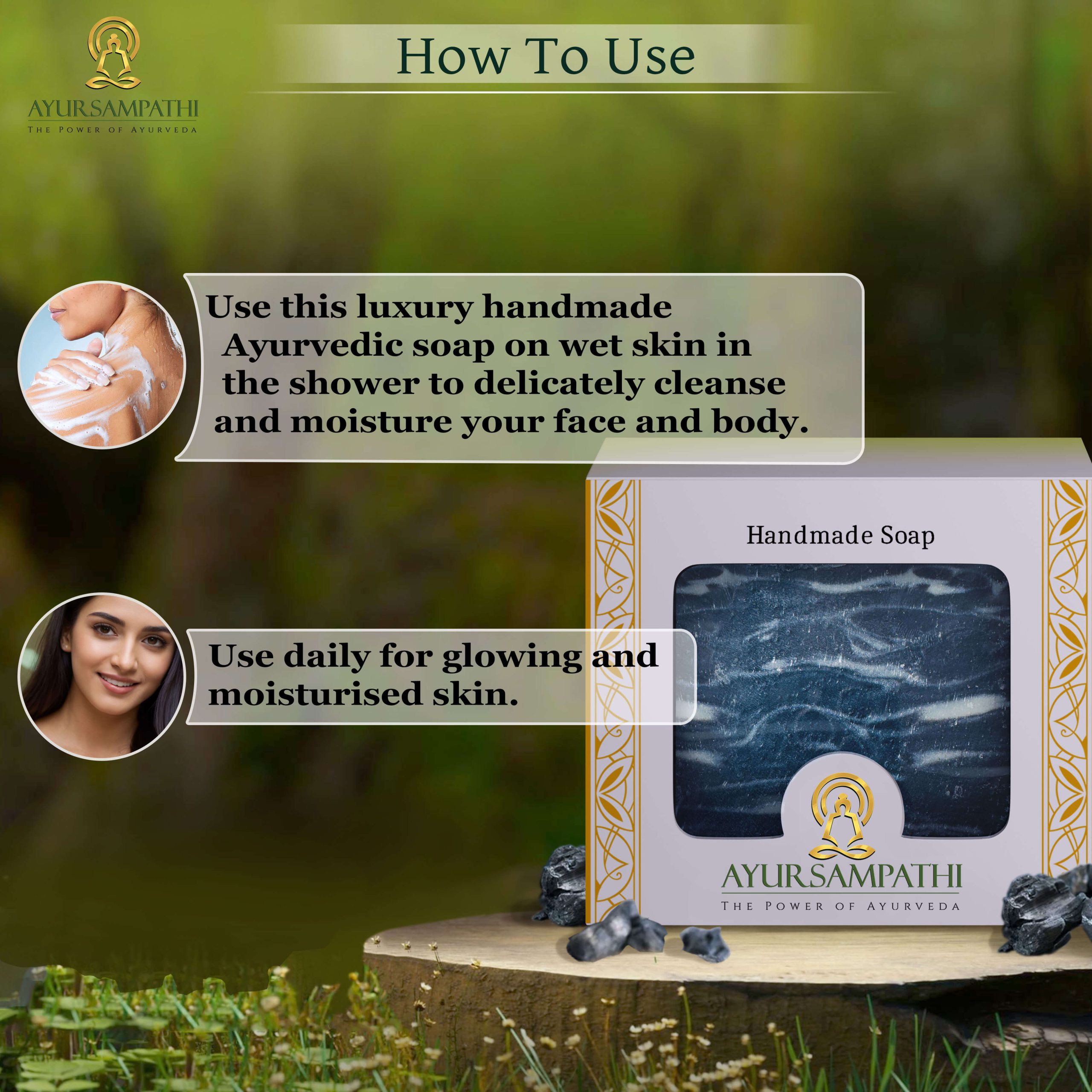 Purify and detox your skin with our Ayurvedic Handmade Charcoal Soap, a powerful blend of activated charcoal and time-honored Ayurvedic herbs, crafted to deeply cleanse, clarify, and refresh your skin—naturally.